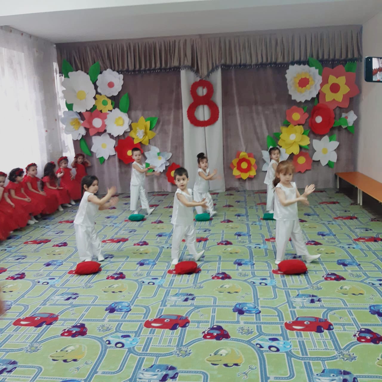 Во время проведения утренника хорошо видно, что в подготовке учитывался индивидуальный подход, особенности развития каждого ребенка этого возраста, так как заметно, что дети хорошо справлялись со всеми данными им заданиями: выразительно читали стихи; пели песни, танцевали и играли в забавные игры. Разработанный материал подобран соответственно каждому возрасту, понятен и доступен детям. Оформление зала было соответственно подобрано празднику и помогало создавать нужное настроение.