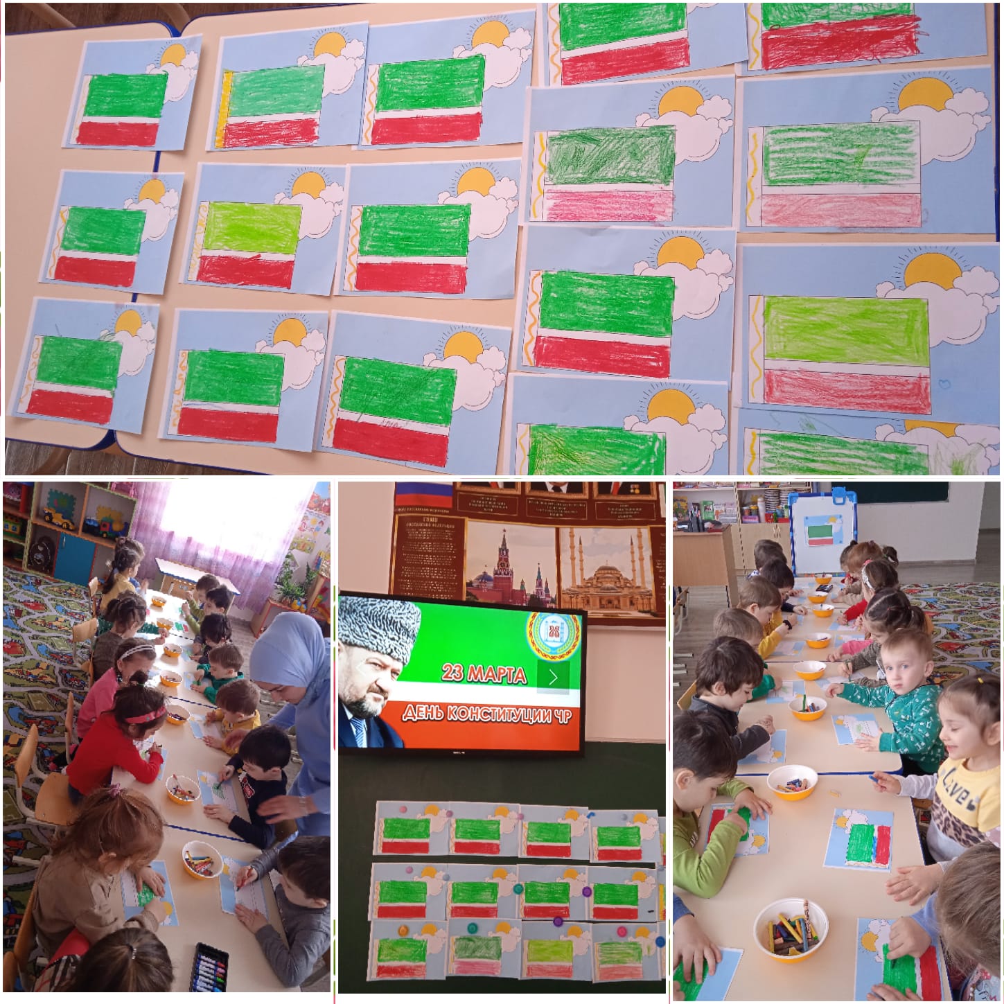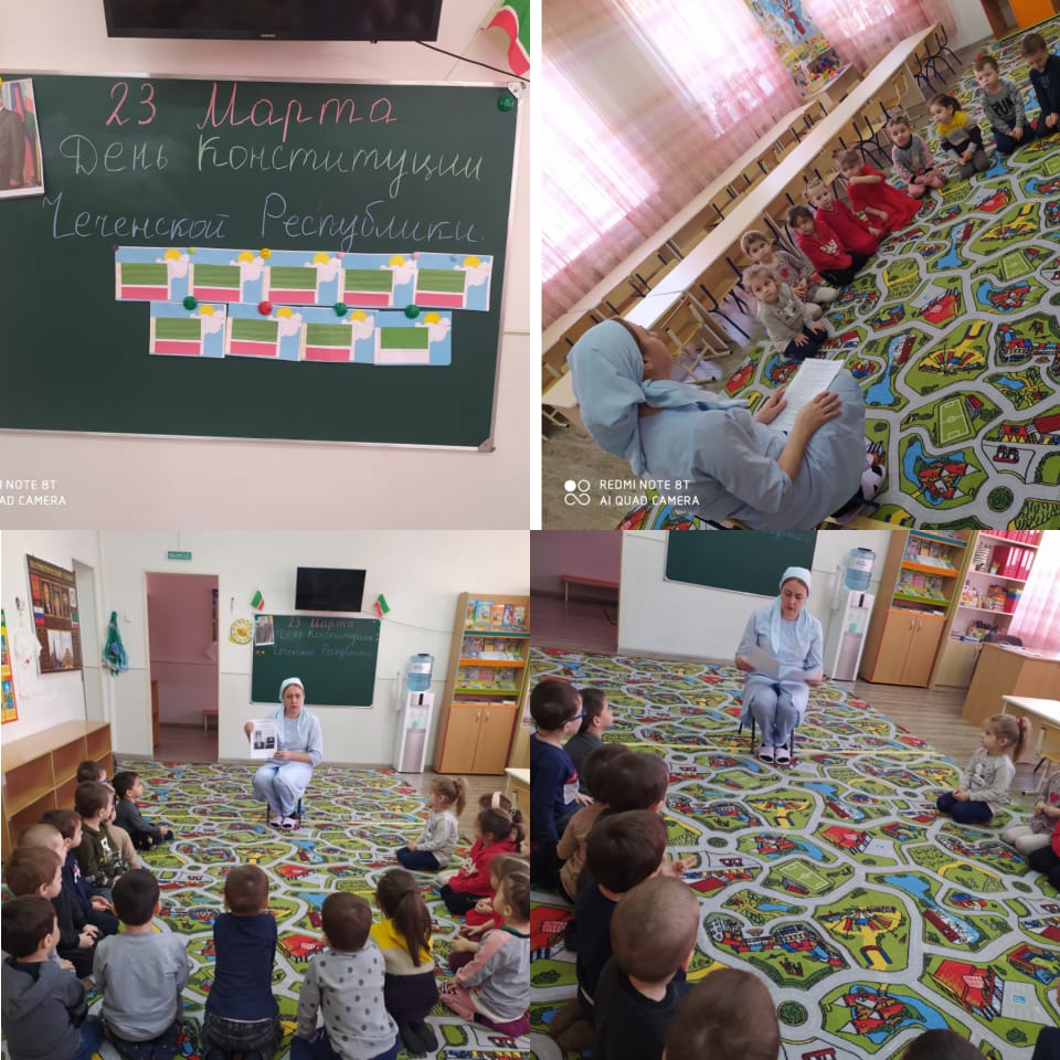 24.03.2022С целью создания условий для формирования знаний о том, что Конституция ЧР основной закон нашей республики, который надо соблюдать в старшей и подготовительной группах детского сада 21 и 22 марта 2022г. были проведены тематические занятия.
