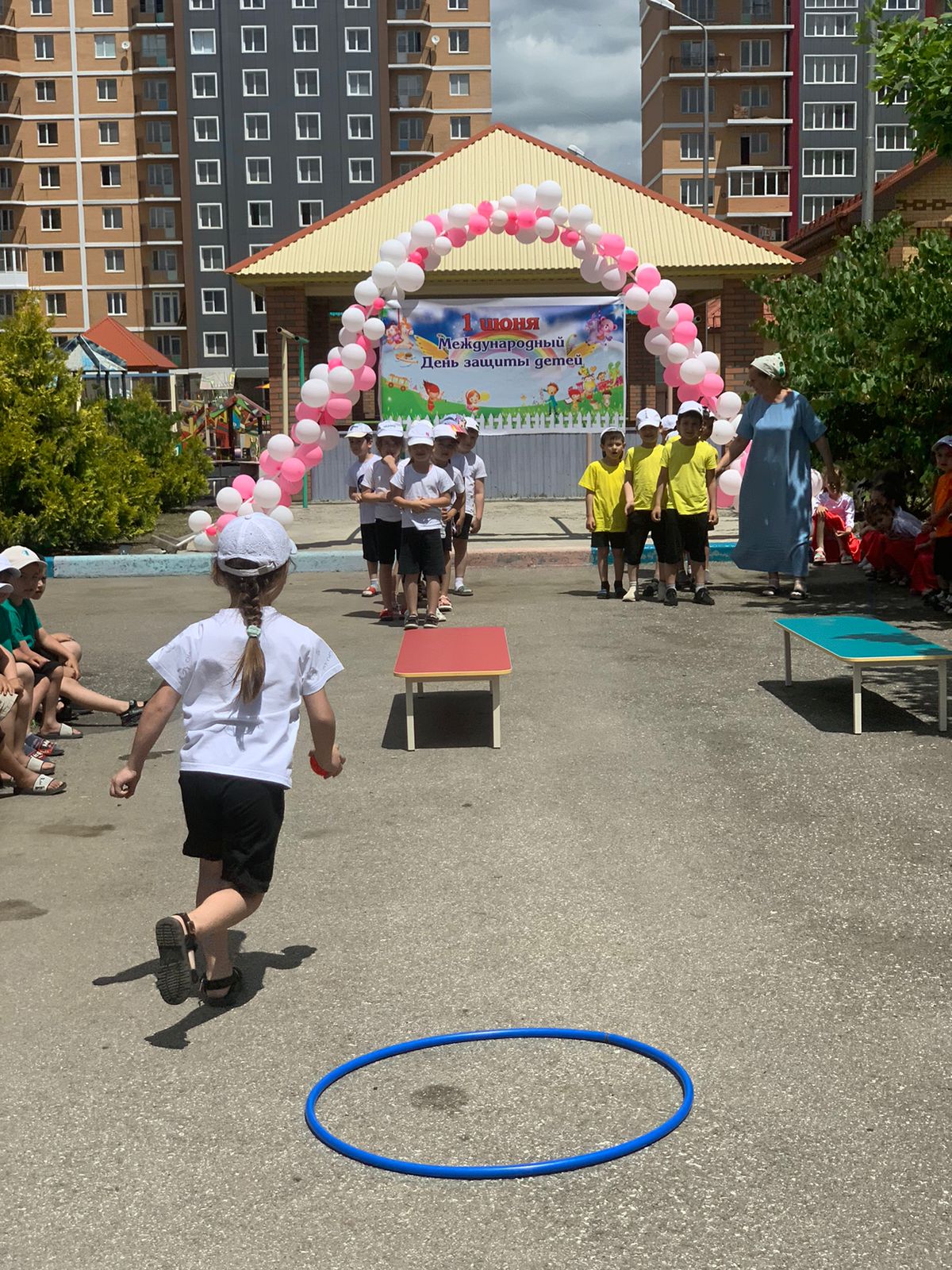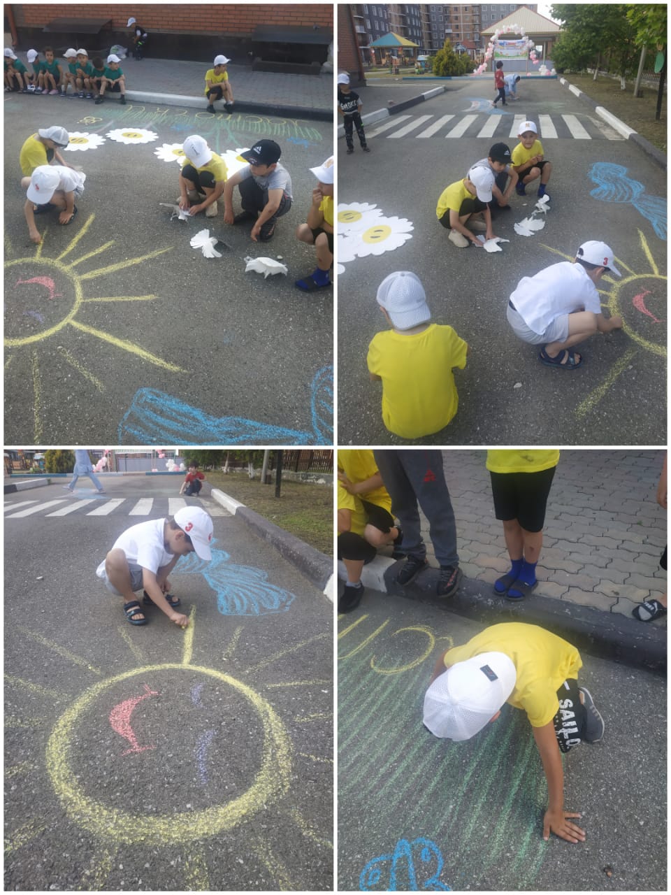 С воспитанниками старших и средних групп провели интересные игры «Как живешь?», «Летучий мяч», «Кто быстрее?» между воспитанниками двух старших групп ДОУ, конкурсы «Собери цветы» и спортивные эстафеты - «Кто быстрее справится», «Быстрые, ловкие, смелые», которые никого не оставили равнодушными. С большим интересом дети отгадывали загадки о сказочных героях, участвовали в играх, необычных эстафетах, читали стихи про безоблачное детство, пели песни о спорте и о дружбе, танцевали «Танец маленьких утят», «У тебя, у меня», «Танец с мячом», «Веснушки» и др. А закончился наш праздник детства рисунками – аппликациями на асфальте «Мой мир».